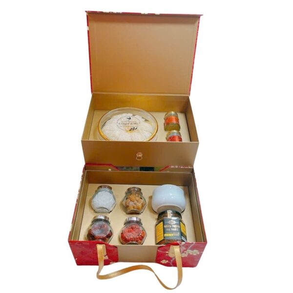 - Hộp quà 2 tầng với thiết kế sang trọng, có túi xách đi kèm