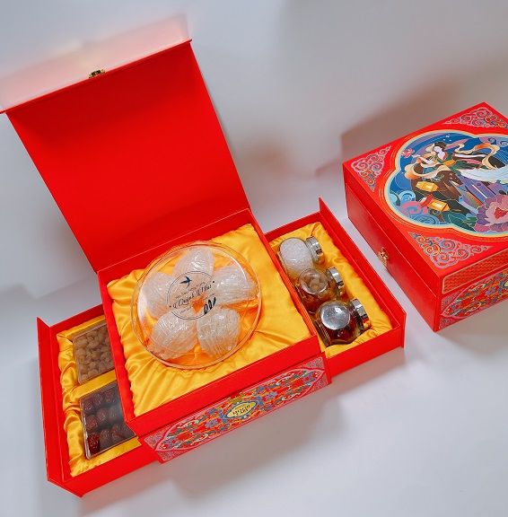 – Lớp ngoài: Túi giấy và Hộp quà đựng được thiết kế riêng biệt, độc đáo, sang trọng, tỉ mỉ đến từng chi tiết