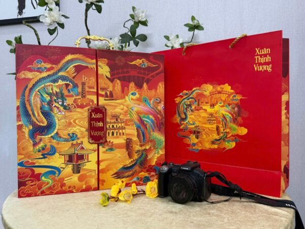 - Hộp quà 2 tầng với thiết kế sang trọng, có túi xách đi kèm