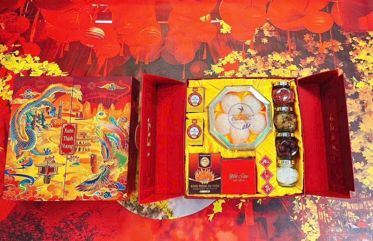- Hộp quà 2 tầng với thiết kế sang trọng, có túi xách đi kèm