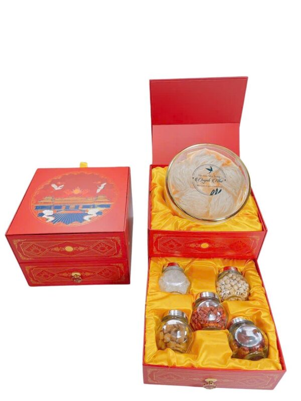 - 5 Hũ Hạt Chưng Yến: Táo Đỏ, Kỳ Tử, Long Nhãn, Đường phèn, Hạt Sen.